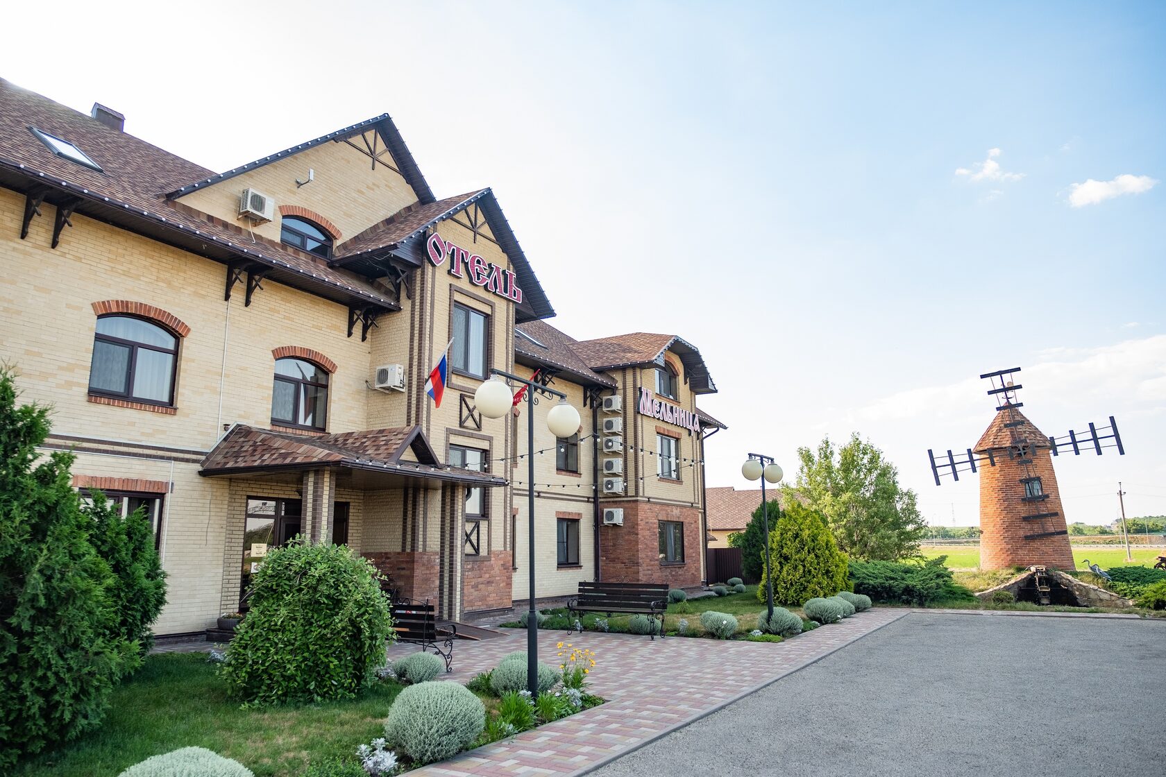 ЗабронироватьРесторанно-гостиничный комплекс «Старая мельница» расположен на пересечении автомобильных дорог к Черному и Азовскому морям, в 100 метрах от трассы М4. Имея непосредственную близость от шоссе, отель удобен для всех, кто едет отдыхать на юг.